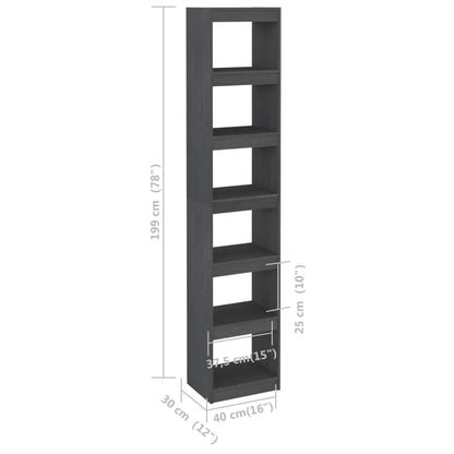 Bokhylle Grå Romdeler 40x30x199 cm heltre furu