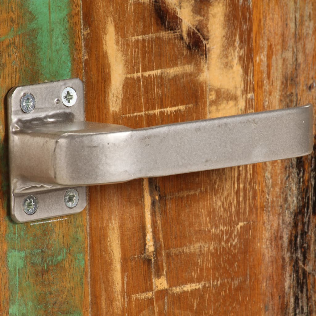 Nattbordet er laget av gjenvunnet heltre som er hentet fra bjelker, gulv og støttebjelker fra gamle revne bygninger, og i tillegg består det av forskjellige typer tre som furu, teak, bøk, eik, seder, mango, akasie, osv. Dette betyr at treverket beholder egenskapene til disse forskjellige treartene. Gjenvunnet tre er allerede eldet, forvitret og tørket, og krympes eller bøyes derfor ikke. Dette nattbordet er helt håndlaget, og den flotte kornstrukturen gjør hvert møbel særegent og litt forskjellig fra det neste. Metallet øker nattbordets industrielle stil. Dette nattbordet gir plass til oppbevaring av bøker, notisblokker, penner, samt andre småting. Det er utstyrt med 4 hjul, og er enkelt å flytte.