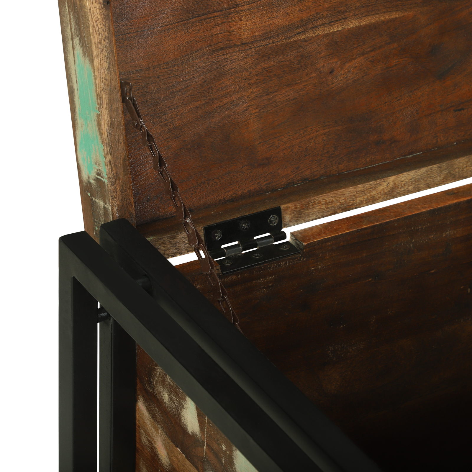 Denne trendy oppbevaringsboksen er et flott tillegg som kombinerer stil og funksjon, perfekt for stuer eller soverom. Laget av solid gjenvunnet tre med en flerfarget slitt finish, gir den et vintage preg som hever innredningen.