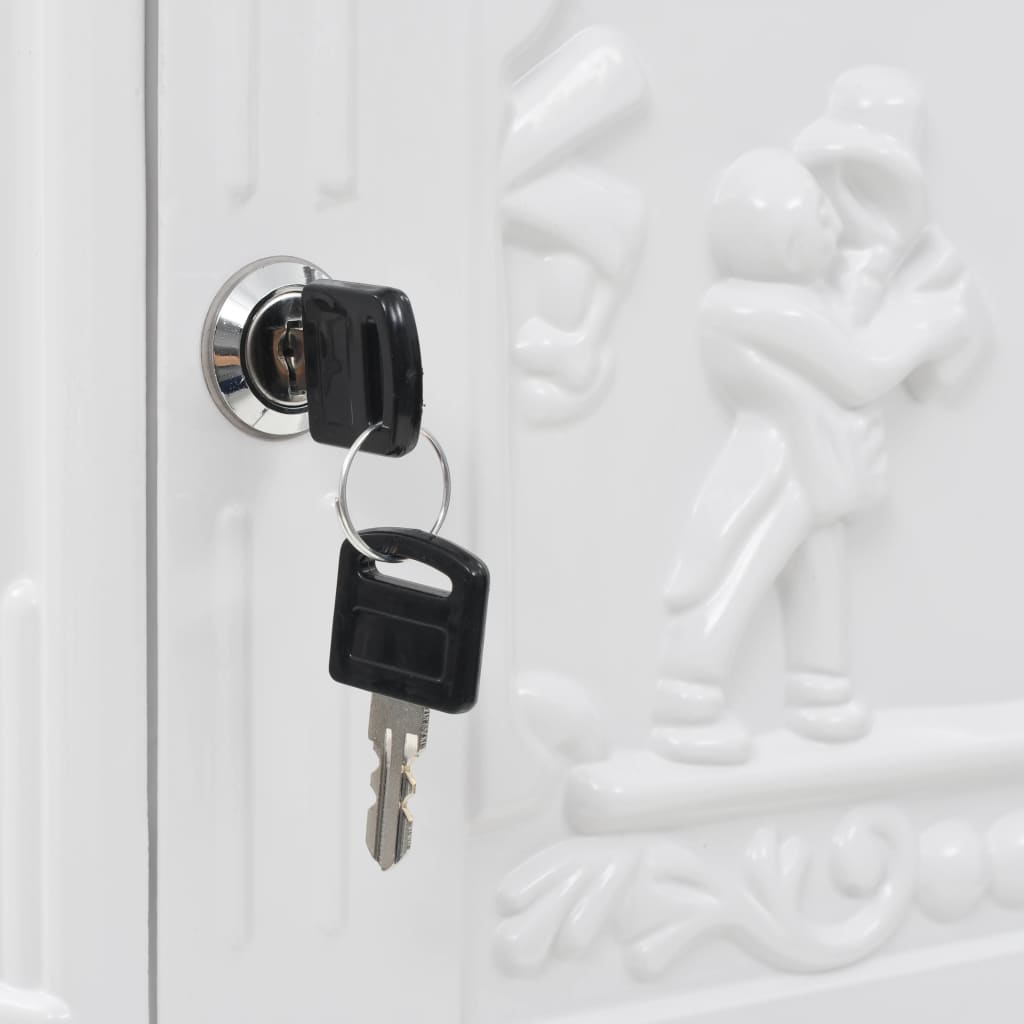 Denne postkassen er utformet med en bred brevsprekk som har en klaff for å beskytte innholdet fra vær og vind med en låsbar dør (2 nøkler inkludert) for å enkelt ta ut brevene. Postboksen er laget av værbestandig og rustfritt støpt aluminium, noe som gjør den særdeles egnet til utendørs bruk. Den er utsmykket med en overflod av utsøkte, gammeldagse dekorative detaljer, og blir et ekte blikkfang i oppkjørselen eller inngangen.