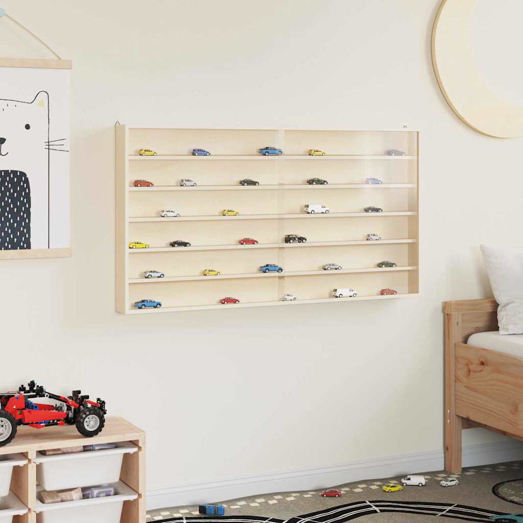 Dette skapet for samlere i tre er et stilig tillegg til ethvert rom, og kombinerer stil med praktisk bruk. Den veggmonterte designen er super for deg som vil spare plass samtidig som du viser frem skattene dine. Enten det står i stua, soverommet eller spisestuen, gir dette skapet et rent, moderne preg på rommet. Med et romslig innhold og skyvedører, fungerer det utmerket for ulike samlinger, enten du har trofeer, leker eller spesielle minner. Laget av glatt kryssfiner, er det både holdbart og ser bra ut. Det har en perfekt balanse mellom klarhet og sjarm som passer fint inn i moderne interiør, og gir en flott visning for gjestene dine.