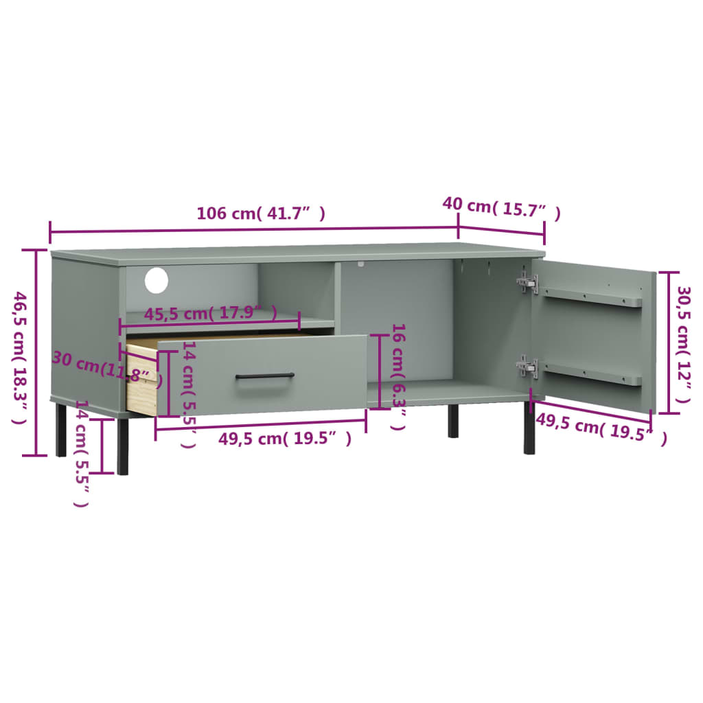TV-Møbel Grå TV-benk med metallben heltre furu OSLO